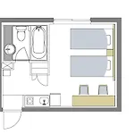 Vous pourrez profiter d'un séjour confortable grâce à des équipements tels qu'une climatisation, ainsi qu'une TV avec chaînes satellitaires et une TV à écran plat avec des chaînes satellite. Doté d'un sol en parquet, l'intérieur est également équipé d'un bureau. Des lits équipés des oreillers en duvet sont à la disposition des clients. Une salle de bain privée est équipée d'un bidet et de toilettes séparées, tandis qu'un sèche-cheveux et un bonnet de douche sont également à votre disposition.